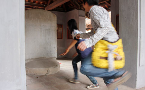 Thoải mái chạy nhảy trong hành lang các khu văn bia để sờ hết bia đá và cụ rùa |