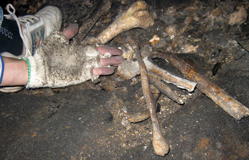 Theo lời các cô hướng dẫn viên du lịch, hầu hết xương cốt gom vào bể xương trong những năm 30 của thế kỷ trước là ở hang Cắc Cớ và tầng thứ 3 của Thần Quang Động. Có lẽ, lời các cô hướng dẫn viên nói là đúng, vì tôi lòng vòng mãi, soi vào các khe vách ở khu vực này, song tuyệt nhiên không thấy bộ xương nào. Thứ tôi gặp chỉ là những mảnh gốm vỡ, những hố đào nham nhở, là vết tích của những cuộc đào cổ vật diễn ra từ nhiều năm trước.
