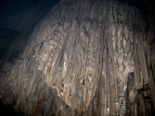 Chồng bà Hoa dẫn tôi đến khu vực 5 ông tượng, là 5 khối thạch nhũ có hình dạng người và chỉ tay xuống hang sâu. Soi đèn pin xuống không thấy đáy đâu cả. Bật chiếc đèn sạc sáng choang, song cũng chả nhìn thấy đáy hang đâu. Nhưng biết hướng đi rồi, tôi và đồng nghiệp cứ thế mà đi. Vì không có người dẫn đường, nên quan điểm thám hiểm của tôi là cứ chỗ nào có đường là tiến, chỗ nào hết đường thì quay lại.