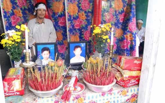 Người cha tội nghiệp nước mắt ngắn dài đứng trực bên di ảnh hai đứa con trai thờ thẫn như người mất hồn.