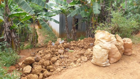 Có khoảng chục đống quặng đã chất sẵn như thế, mỗi đống quặng ước tính nặng hàng tấn. Nhiều đống quặng, người dân lấy bạt xanh, hoặc lá cây phủ lên. Người đàn ông chăn trâu chúng tôi gặp bên đường cho hay: đó là quặng sắt do người dân tự khai thác.