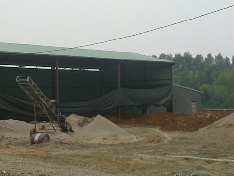 | Những bãi quặng khổng lồ tập kết bên trong nhà máy sản xuất lân Quang Minh. |