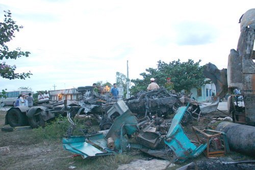 Bên cạnh xác những chiếc xe chỉ còn lại là đống đổ nát, những người dân quê thôn 3 xã Hồng Sơn (H. Hàm Thuận Bắc, Bình Thuận), trên gương mặt vẫn còn nét thảng thốt đã thuật lại câu chuyện như vừa trải qua một cơn ác mộng.