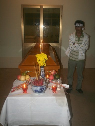 Sau khi làm các thủ tục, thi thể ông Mưu được khâm liệm tại nhà xác và quàn