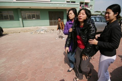 | Chị Trần Thị Hà (giữa) đi không vững khi biết tin mất con (Ảnh: GDVN) |