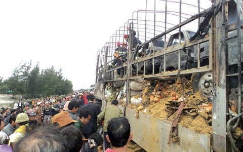 Nhận được tin báo, lực lượng PCCC Công an tỉnh Quảng Bình đã có mặt để dập lửa. Tuy nhiên, khi ngọn lửa được dập tắt thì chiếc xe tải nói trên và 5 xe bán tải, cùng tất cả hàng hóa đã bị thiêu rụi.