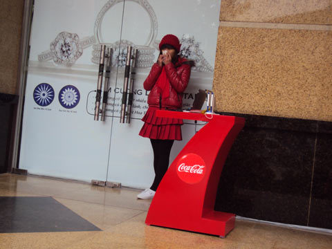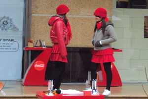| Mặc cho thời tiết giá rét, những PG vẫn phải mặc váy và miệng luôn luôn nở nụ cười tươi. |