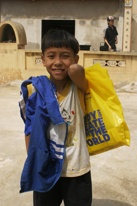 | Nụ cười tươi của một em nhỏ xóm Thơm, xã Hương Sơn, Huyện Phú Bình, Thái Nguyên khi nhận được quà từ một đoàn du lịch tình nguyện của sinh viên (Ảnh La Hoàn) |