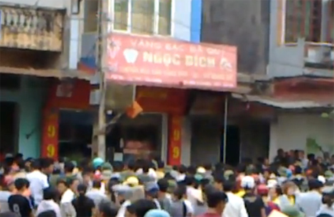 13 giờ 30 phút, hàng ngàn người tập trung trước tiệm vàng Ngọc Bích, lặng đi trước linh cữu 3 nạn nhân xấu số. Chẳng ai nói được câu gì. Lặng câm, nghẹn ngào.