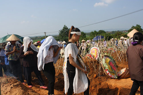 Dòng người tiễn đưa kéo dài cả cây số. Đường ra nghĩa trang chỉ chừng hơn 1km mà tưởng chừng dài vô tận. 3 huyệt mộ đào vội, một gia đình trong phút chốc đã nằm cùng nhau giữa nghĩa địa lãnh lẽo. Đêm 24/8, họ còn quay quần, tíu tít bên nhau ở nhà, vậy mà giờ đây, đã thuộc về thế giới khác, giữa cánh đồng lạnh lẽo vi vút gió hoang.