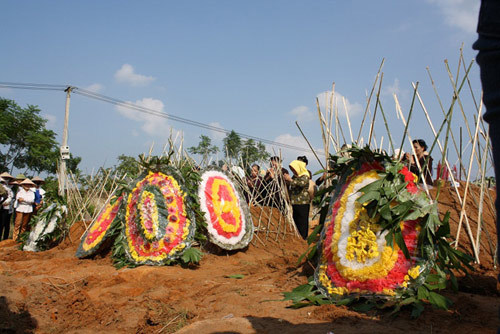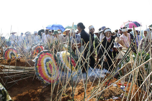 Những nắm đất được phủ kín 3 cỗ quan tài; những vành hoa trắng ngập lối đi, những tiếng khóc vĩnh biệt người thân làm cho bầu không khí nơi đây đặc quánh lại.