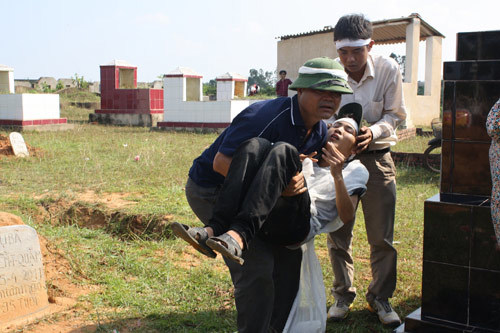 Nhìn thảm cảnh những mái đầu bạc tiễn đưa những mái đầu xanh không ai đành lòng cầm được nước mắt.