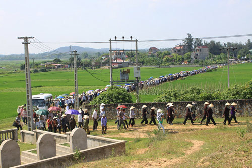 Cuối chiều, đoàn người trở về. Thi thoảng, họ lại ngoái nhìn về phía sau và quệt ngang dòng nước mắt chực trào.
