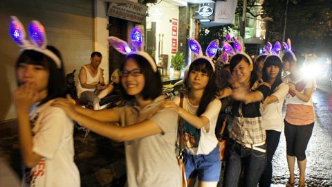 Các bạn trẻ nối đuôi nhau vui trung thu trên phố hàng Mã - Hà Nội |