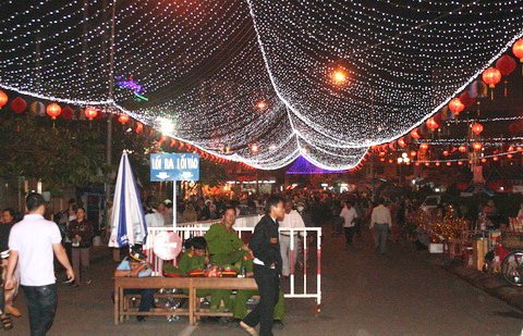 Có mặt tại đây vào lúc 3g sáng ngày Rằm tháng Giêng (6/2 dương lịch), trước mặt chúng tôi, đèn hoa trang hoàng phía trước cổng chùa thật rực rỡ. Những con đường hướng vào chùa đều đã có dân phòng và công an chốt gác nhằm hạn chế các loại xe lớn lưu thông.