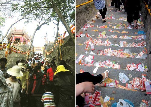 Từ sau Tết Nguyên đán cho đến nay, mỗi ngày có hàng ngàn người hành hương về đây để dâng lễ, cầu xin khiến khu vực này xuất hiện không ít cảnh tượng phản cảm.