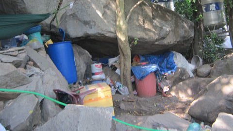 | Các kẽ đá dường như là nơi rất thuận lợi để dúi rác vào đó. |