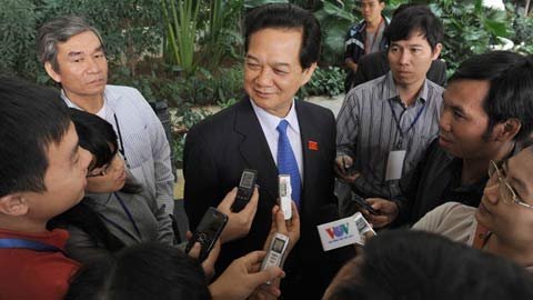 Thủ tướng Nguyễn Tấn Dũng trò chuyện với báo giới giờ giải lao phiên bế mạc kỳ họp |
