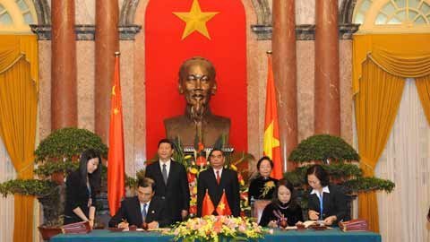 Trước đó, đoàn đại biểu Việt Nam - Trung Quốc do Thường trực Ban Bí thư Lê Hồng Anh, Phó Chủ tịch nước Nguyễn Thị Doan dẫn đầu và đoàn đại biểu Trung Quốc do Phó Chủ tịch nước Tập Cận Bình dẫn đầu đã tiến hành hội đàm, thảo luận các biện pháp thúc đẩy quan hệ song phương Việt - Trung.