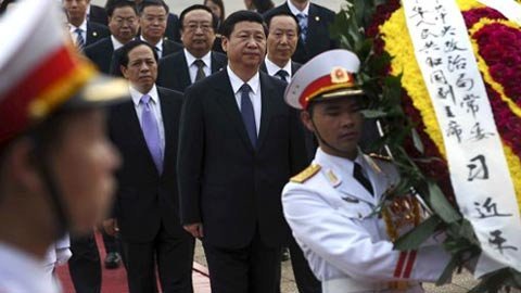 | Trước lễ đón chính thức tại Phủ Chủ tịch sáng nay, Phó Chủ tịch Trung Quốc Tập Cận Bình đã vào Lăng viếng Chủ tịch Hồ Chí Minh. Ảnh: Reuters |