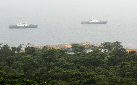 Tàu của lực lượng Vùng Cảnh sát biển 1 tập kết tại Đảo Cồn Cỏ (Quảng Trị) chuẩn bị lên đường tuần tra chung