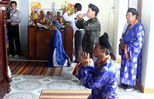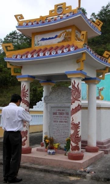 Thắp hương tại mộ Đức Thuỷ tổ tộc Huỳnh (Hoàng) Xuân Đài - Huỳnh Đại Lang Phủ Quân (1572-1679) vốn quê ở Làng Huệ Trù, huyện Minh Chánh, Phủ Nam Sách, Hải Dương, gốc gác họ Mạc (hậu duệ của Mạc Đĩnh Chi). Cũng theo gia phả tộc Hoàng, sau khi nhà Mạc bị lật đổ, Đức Thuỷ Tổ đã chạy vào Xuân Đài và cải họ thành họ Huỳnh - Huỳnh Văn Phổ. Photo: Hoàng Dũng |