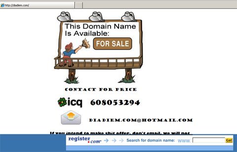 Trong khi VOZ bị cướp tên miền rồi điều hướng sang địa chỉ IP khác thì tình trạng của trang bản đồ trực tuyến diadiem.com lại thê thảm hơn. Tin tặc đã cho đăng một thông điệp rao bán tên miền diadiem.com bằng tiếng Anh chình ình ngay trên chính website này.