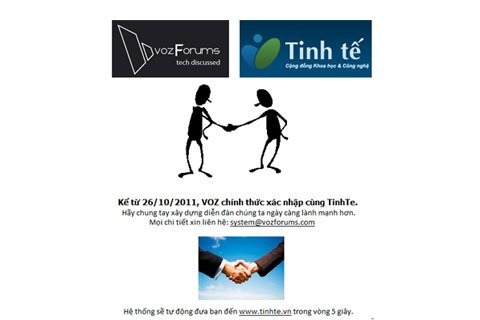 Sự việc xảy ra vào sáng ngày 26/10/2011. Người dùng Internet khi truy cập vào diễn đàn VOZ sẽ bị chuyển hướng sang Tinhte.vn với lời nhắn: “Kể từ 26/10/2011, VOZ sẽ chính thức xác nhập cùng TinhTe”. Điều này dễ gây nên hiểu lầm cho ban quản trị các website và gây hoang mang cho các thành viên của hai diễn đàn.