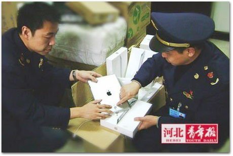 Nhà chức trách Trung Quốc tịch thu iPad. Ảnh: Hebei Youth Daily