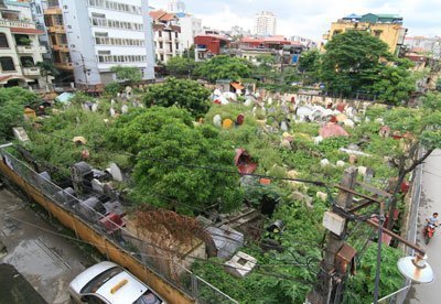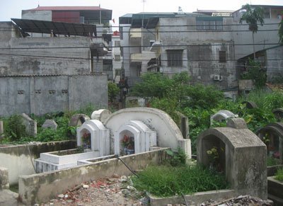 | Nghĩa trang Chùa Láng nằm lọt thỏm giữa khu dân cư. Ảnh: GĐ |