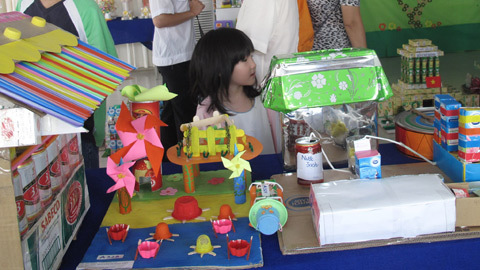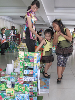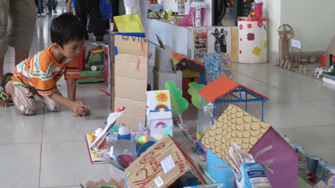 “Con rất thích những trò chơi này vì chúng ngộ nghĩnh. Con thích nhất là cái nhà làm bằng hộp giấy. Về nhà con sẽ không vứt giấy vào sọt rác mà để dành để mai mốt làm một cái nhà giống như vầy”, một bé gái nói.