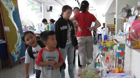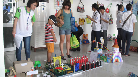 “Trong khu trưng bày có rất nhiều sản phẩm do học sinh 45 trường Tiểu học, 17 Trung học ở TP.HCM thực hiện. Chúng tôi hy vọng, qua chương trình sẽ gửi được thông điệp về công cuộc tái chế chất thải, bảo vệ môi trường đến đông đảo người dân”, Ông Lê Văn Khoa, Giám đốc Quỹ tái chế Chất thải TP.HCM, nói.