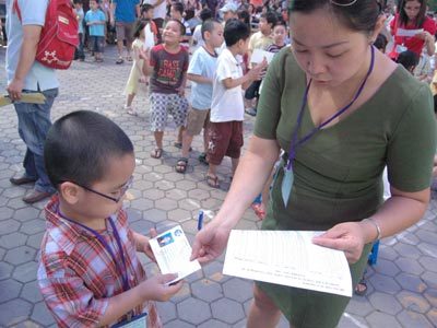 | Kiểm tra giấy tờ của các cháu trước khi lên phòng thi. |
