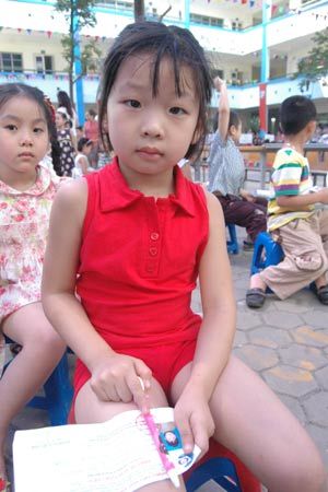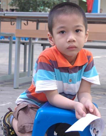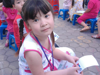 | Những gương mặt hồn nhiên nhưng cũng khá lo lắng của các bé trước giờ thi. |