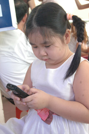 | Hay hí hoáy với điện thoại của bố mẹ. |
