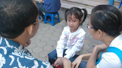 | Bé mếu máo khi phải xa bố mẹ. |