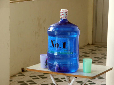 | Bình nước được nhà trường đặt trước cửa các phòng thi tại trường CĐ Nội Vụ Hà Nội (Ảnh: Phạm Thịnh, VTC News). |