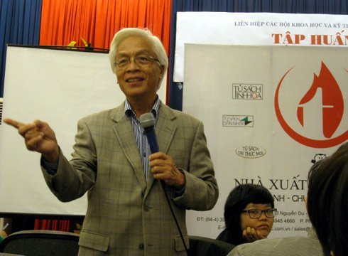 Trong khán phòng chỉ khoảng hơn 30 người có gương mặt của một số bạn trẻ. GS Chu Hảo nhân dịp này điểm danh lại những đề án cải cách giáo dục của các trí thức lớn từng đề xuất.