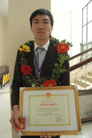 | Lê Văn Quyền, SV Công nghệ thông tin ĐH Bách Khoa Hà Nội cùng 3 bạn khác trong nhóm xuất sắc đạt giải Nhất với công trình giúp đỡ người chạy thận nhân tạo. |