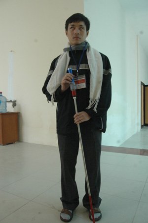 Với nhóm 4 SV gồm Huỳnh Hữu Cảnh (chủ đề tài), Nguyễn Anh Tuấn, Hồ Phạm Uyên Phương và Nguyễn Thị Thùy Dung (Khoa GD đặc biệt, ĐH Sư phạm TP. HCM) sản phẩm cây gậy có gắn mô hình đèn và âm thanh cho người khiếm thị xuất phát từ chính hoàn cảnh của cá nhân.