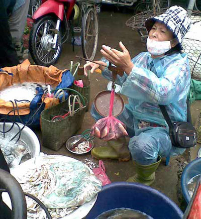 Còn chị Lê Thùy Dung đi chợ làng Yên Xá (Thanh Trì) mua mấy con cá rô phi. Lúc hỏi thì người bán hàng ra giá chung chung 50.000 đồng/kg loại nhỏ, 55.000 đồng/kg loại to. Chọn 2 con, cân được 0,83 kg, thành tiền 47.000 đồng, chị thắc mắc sao bảo giá 50 lại tính giá 55, người bán hàng trả lời, "giá 50 là loại dưới 4 lạng, 2 con này ai bán với giá đó!". Đã vậy, người bán hàng còn cân thiếu. "Tôi mang 2 con cá đi cân lại ở hàng rau gần đó, 0,83kg cá chỉ còn chưa đến 0,78kg", chị Dung bùi ngùi từ việc cân "điêu" của chủ hàng.