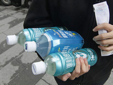 Khách hàng trả lại các chai nước uống đóng chai khi có tổng cộng 9 nhãn hiệu bị phát hiện sản phẩm có dương tính với DEHP (Ảnh: Taiwan News)