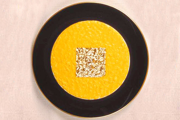 Milan đầu bếp của Gualtiero Marchesi đã nấu món cơm này và trang trí bằng những lá vàng dát mỏng. Milan gọi đó là "một món ăn sang trọng tuyệt vời".