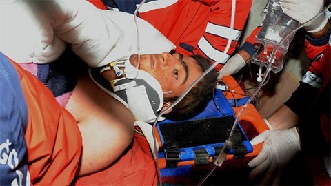 Các nhân viên cứu hộ lôi một trong những thiếu niên ra khỏi đống đổ nát ở