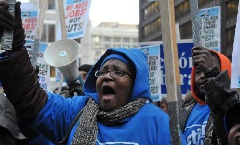 | Chiều 17/11, hơn 1.000 người biểu tình "Chiếm Chicago" tham gia kế hoạch hành động "Không cắt giảm việc làm". (Ảnh: THX) |