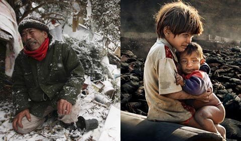 Cậu bé gầy tong teo vì nạn đói, người đàn ông 60 tuổi ngồi khóc bên đống đỏ