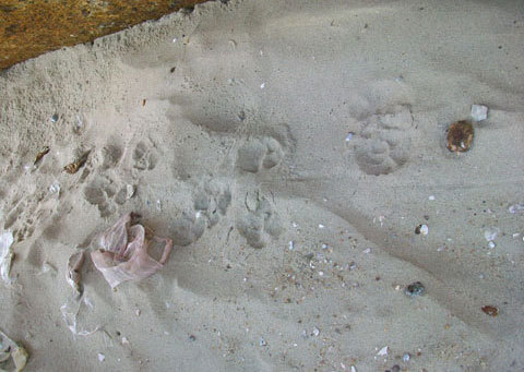 Khi được hỏi về những dấu chân để lại trên cát, ông Công cho biết, đó không phải là dấu chân của mãnh thú, đơn thuần chỉ là dấu chân của những con chó đi ban đêm. Ngoài ra cũng không có chuyện có đến gần 20 con chó của người dân bị xé xác. Thông tin này không đúng sự thật.