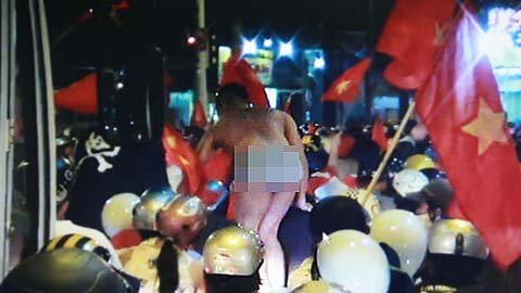 Sau chiến thắng 8 “sao” của đội tuyển U.23 Việt Nam trước U.23 Brunei, trong số hàng ngàn các cổ động viên TP HCM đổ ra đường ăn mừng chiến thắng của đội nhà, có người đã thoát y giữa phố.
