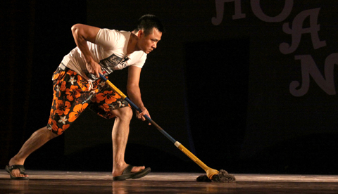 Tự Long ở nhà và sở thích "tạo dáng" với cây chổi