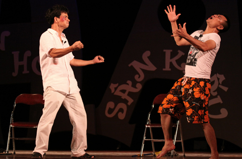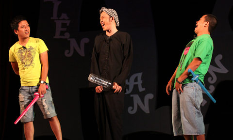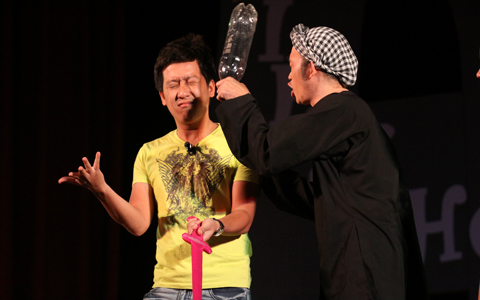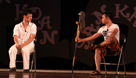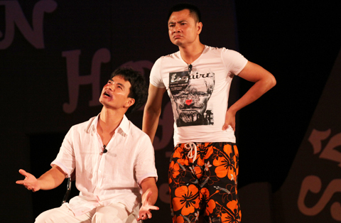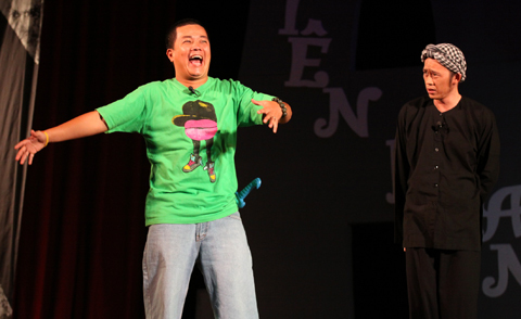 Đến từ tận TP. HCM, hai danh hài Hoài Linh và Hồng Vân vừa đáp máy bay và đi tới Hạ Long đã ngay lập tức lên sân khấu để mang đến cho khán giả những tiếng cười.